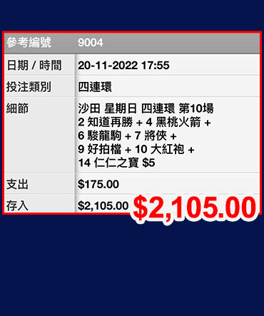 如各位堅仔用戶跟任何堅仔功能贏馬,可將截圖 WhatsApp 至 + (852) 5536 1016。